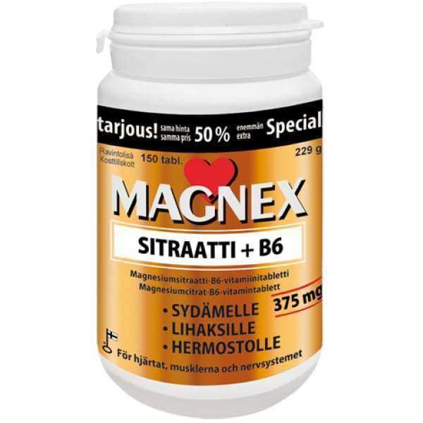 Magnex Sitraatti + B6-vitamiini on ravintolisä sydämelle, lihaksille ja hermostolle