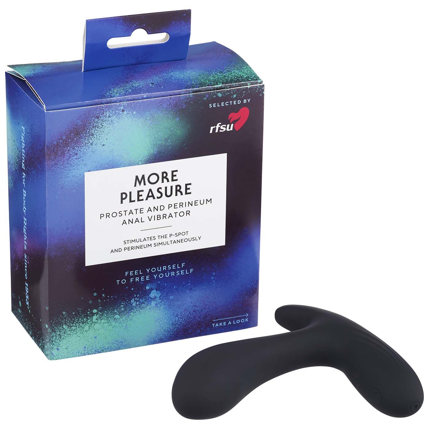 RFSU More Pleasure on eturauhasen P-pisteen sekä välilihan stimulointiin kehitetty turvallinen ja helppokäyttöinen vibraattori. Ergonomisen muotoilun ansiosta laite pysyy hyvin paikoillaan, jättäen kädet vapaaksi.