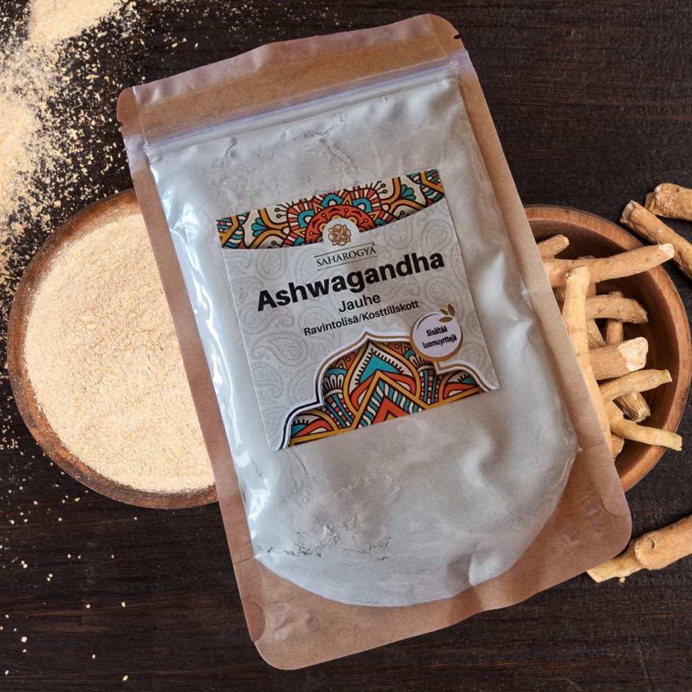 Ashwagandha Ayurveda Kasvi- ja yrttivalmisteet Ravintolisät Vegaaniset tuotteet Vitamiinit & RavintolisätSaharogya Ashwagandha jauhe