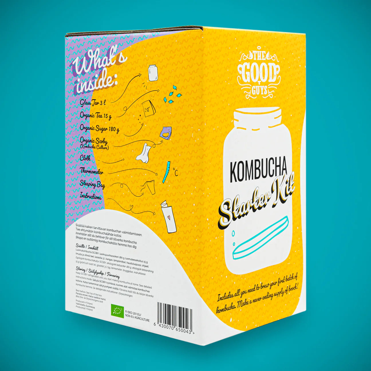 Laadukas the good guys -aloituspakkaus sisältää vahvan, elinvoimaisen luomu-SCOBYn, starter-nesteen sekä vihreän ja mustan teen sekoituksen.