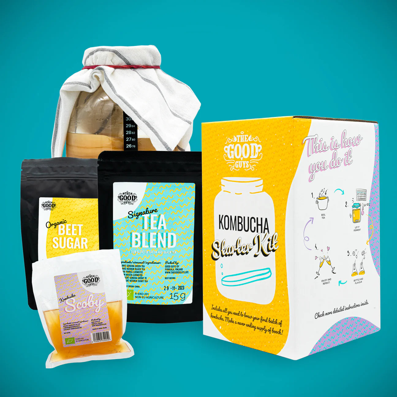 Kotitekoisen kombuchan valmistus on nyt helpompaa kuin koskaan. The Good Guys Kombucha Starter Kit tarjoaa kaiken, mitä tarvitset ensimmäisen kolmen litran kombucha-erän valmistukseen.