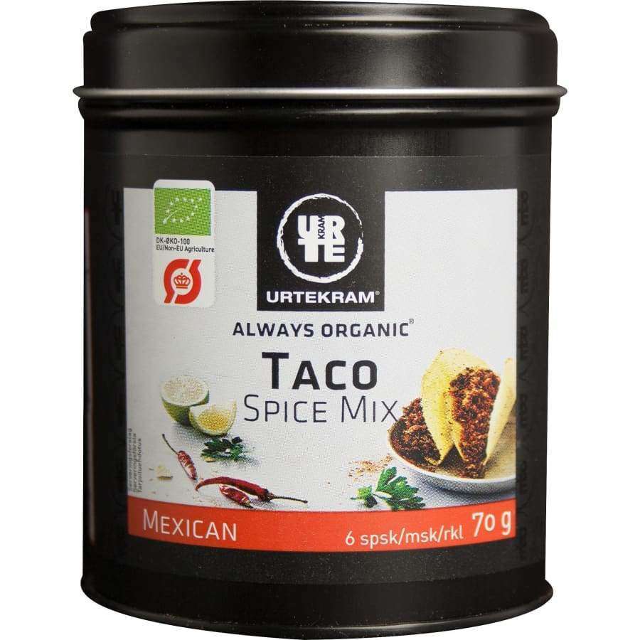Urtekram Luomu Taco mausteseos on klassinen meksikolainen mausteseos. Käytä 2 rkl mausteseosta kastikkeeseen, jossa on n. 400 g jauhelihaa tai vastaava määrä soijarouhetta.
