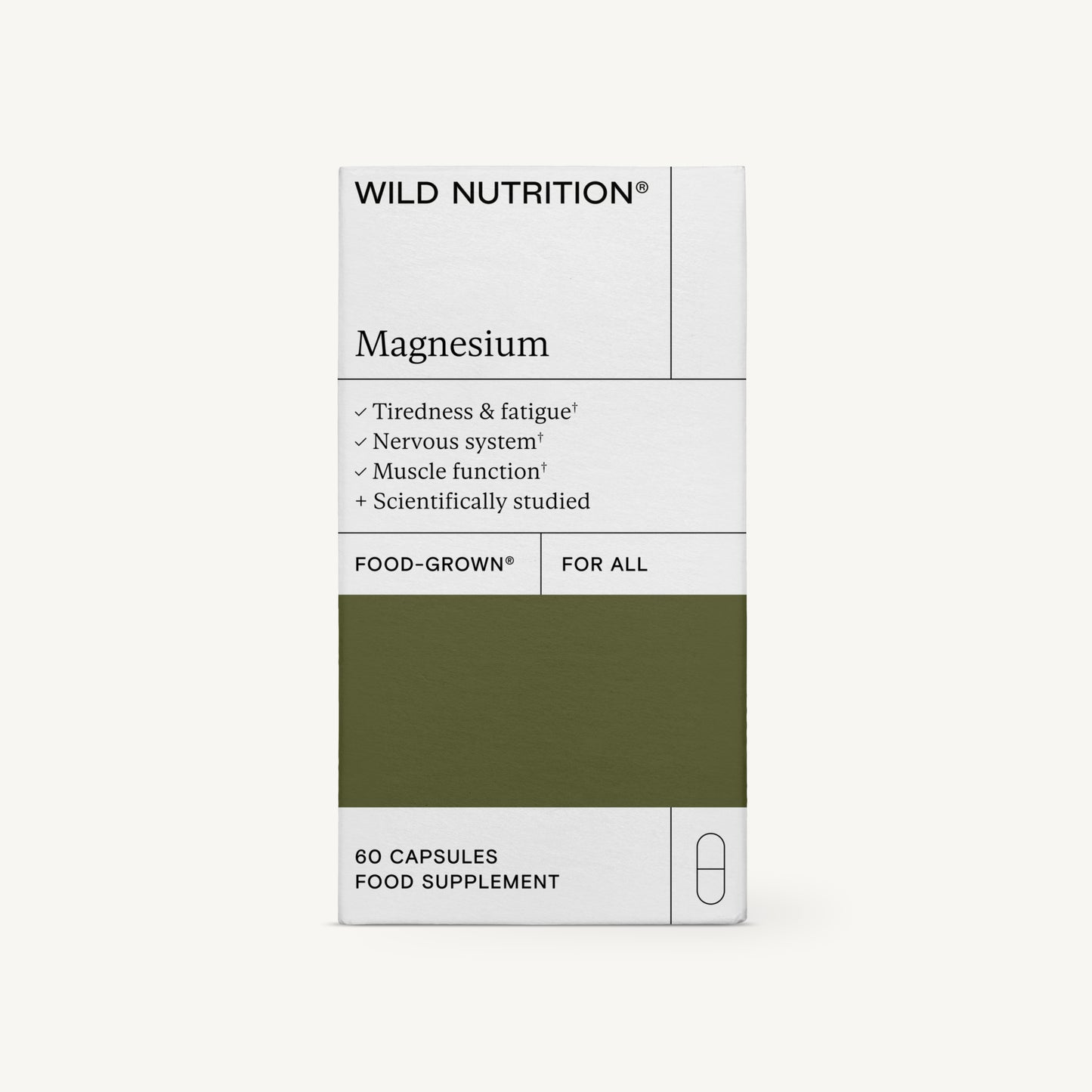 Wild Nutrition Magnesium on FOOD-GROWN®-menetelmällä kasvatettu magnesiumvalmiste.