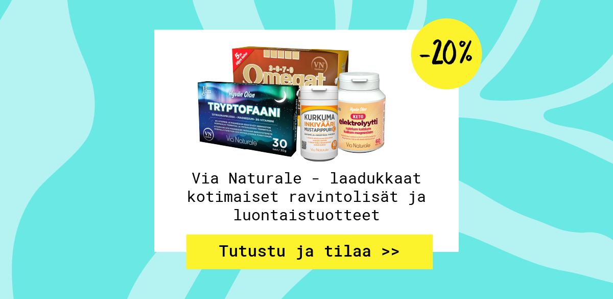 Valikoimastamme löydät Suomen laajimman valikoiman luonnonkosmetiikkaa, vitamiineja, luontaistuotteita, luomutuotteita, urheiluravinteita sekä ekologisia kodin puhdistusaineita.