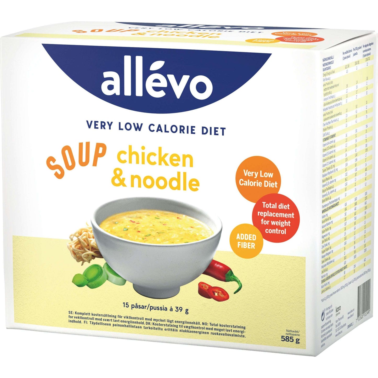 Allevo Ateriankorvikekeitot Ateriankorvikkeet Laihdutus Puhdistuskuurit RavintoOnko sinulla Allevo VLCD Keitto Kananuudeli -kokemuksia? Jätä arvostelu!