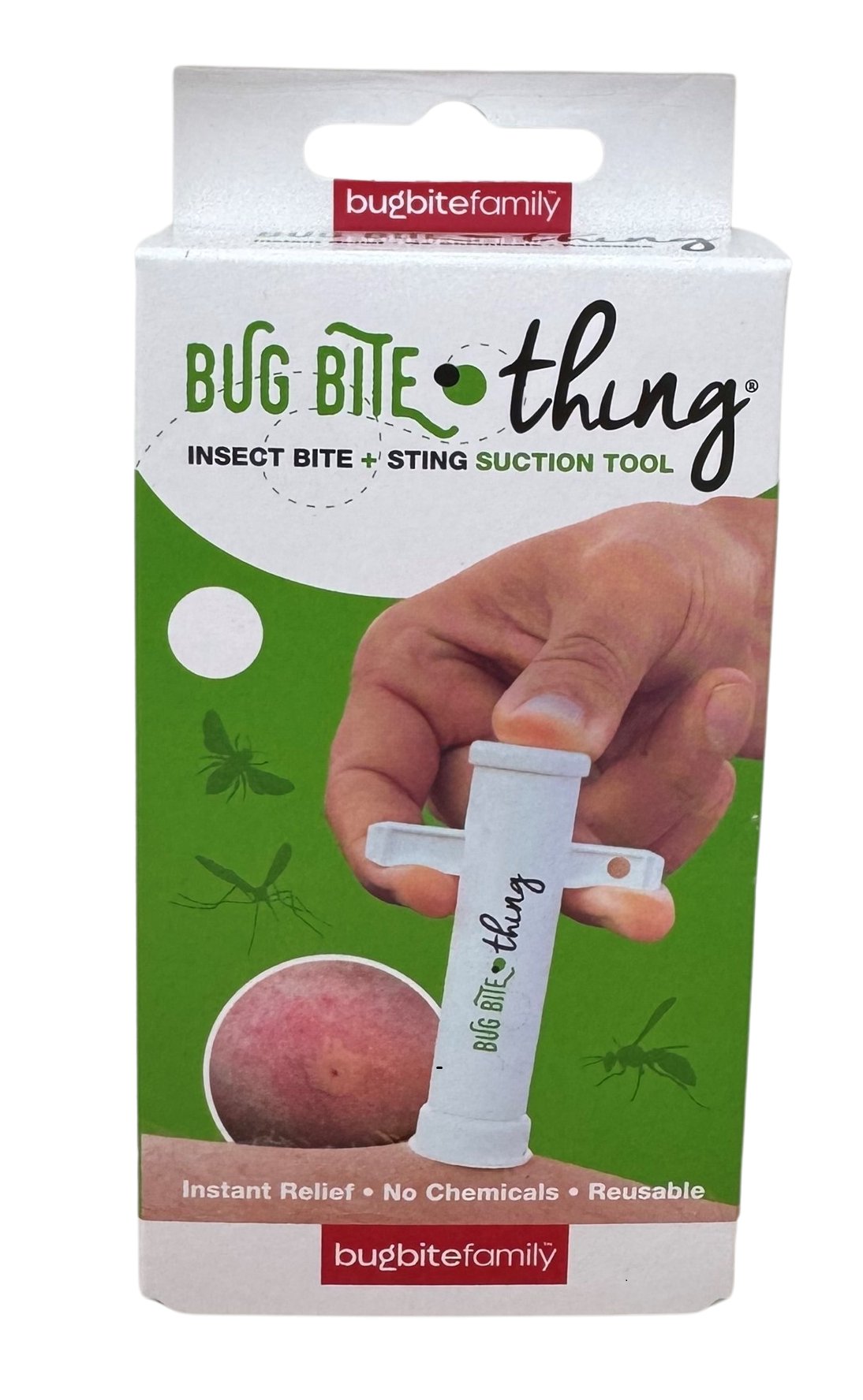 Bug Bite Thing imutyökalu tarjoaa nopean ja luonnollisen helpotuksen hyönteisten pistoihin ja puremiin. Tämä nerokas väline imee ihoon päässeen ärsykkeen, mikä voi helpottaa kutinaa, turvotusta ja epämukavuutta. Ilman kemikaaleja tai lisäaineita – sopii koko perheelle.