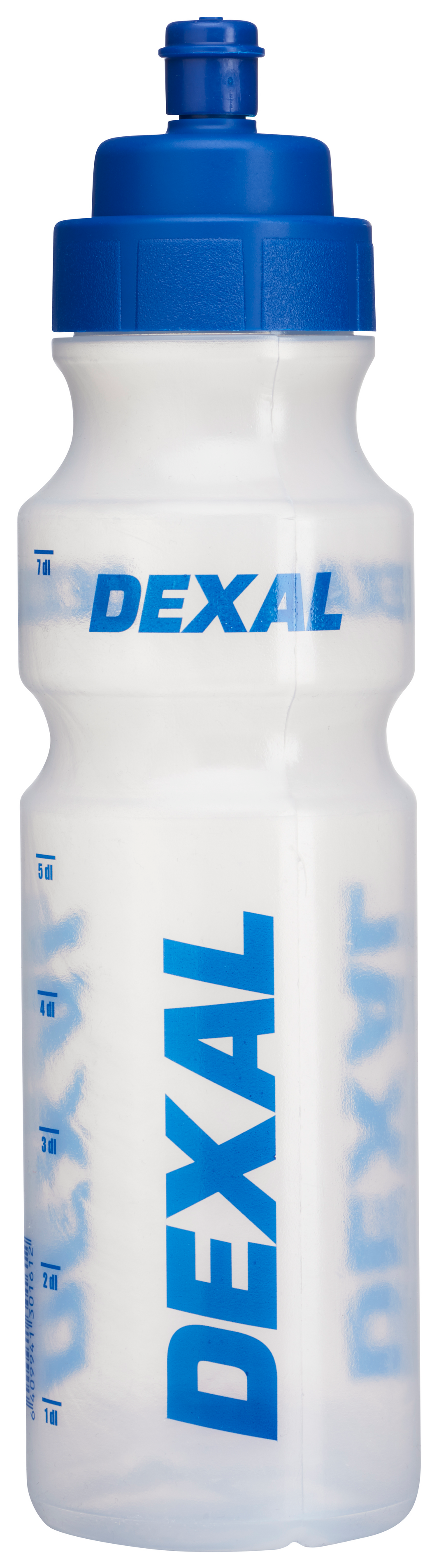 Dexal-juomapullo on suunniteltu toistuvaan käyttöön. Huuhtele pullo ennen ensimmäistä käyttöä ja säännöllisesti käytön jälkeen. Voit säilyttää siinä vettä, urheilujuomaa tai muuta nestettä. Sopii käytettäväksi Dexalin urheilujuomatiivisteiden kanssa.
