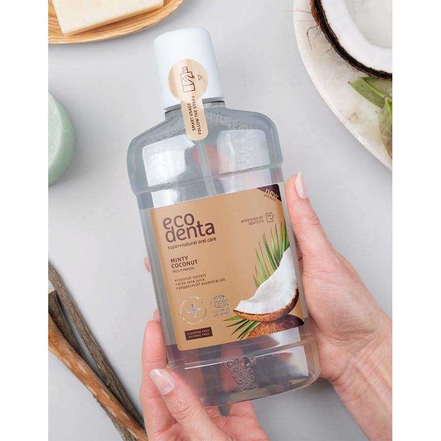 Ecodentan Minty Coconut suuvesi on luomusuuvesi, joka puhdistaa koko suun! Minttu-kookossuuvesi sopii päivittäiseen käyttöön. Ei sisällä fluoria tai alkoholia. Raikas mintun ja kookoksen maku.