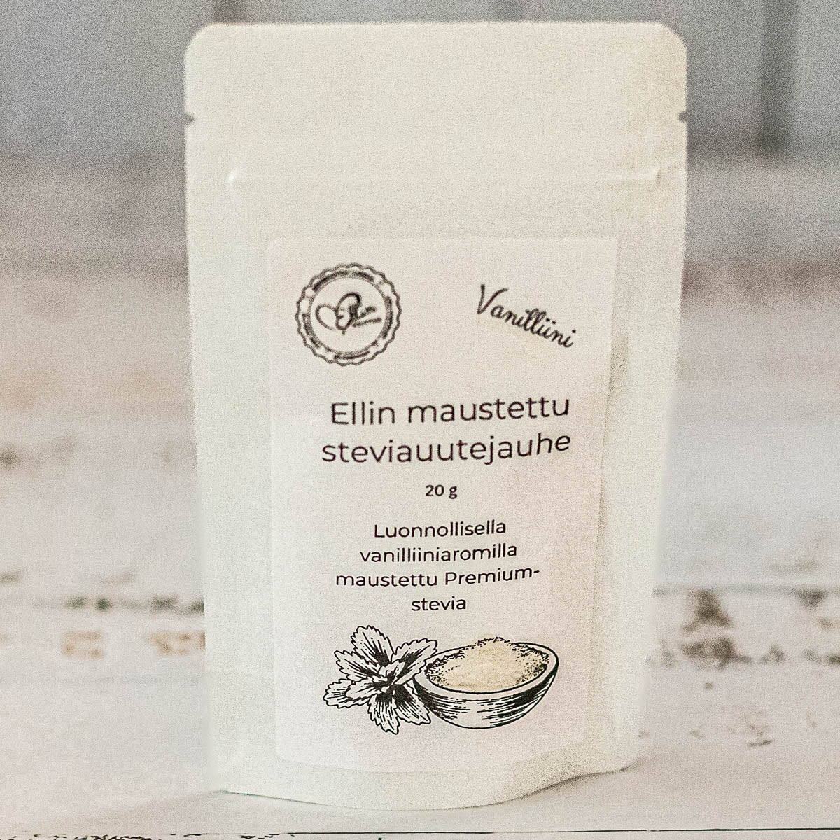 Unohda kitkerät steviat ja keinotekoiset vaniljaesanssit – Ellin Vanilliinistevia yhdistää stevioliglykosidien luonnollisen makeuden ja vanilliinin lämpimän aromin yhdeksi taianomaiseksi Tämä 20 gramman pussukka vastaa makeudeltaan jopa kuutta kiloa sokeria.