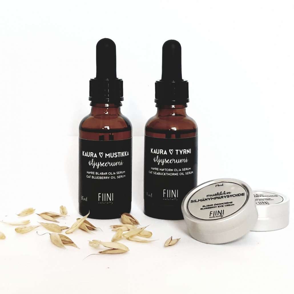Fiini Naturally Kaura-Mustikka-Öljyseerumi sisältää puhdasta kotimaista kauraöljyä, sekä mustikansiemenöljyä.