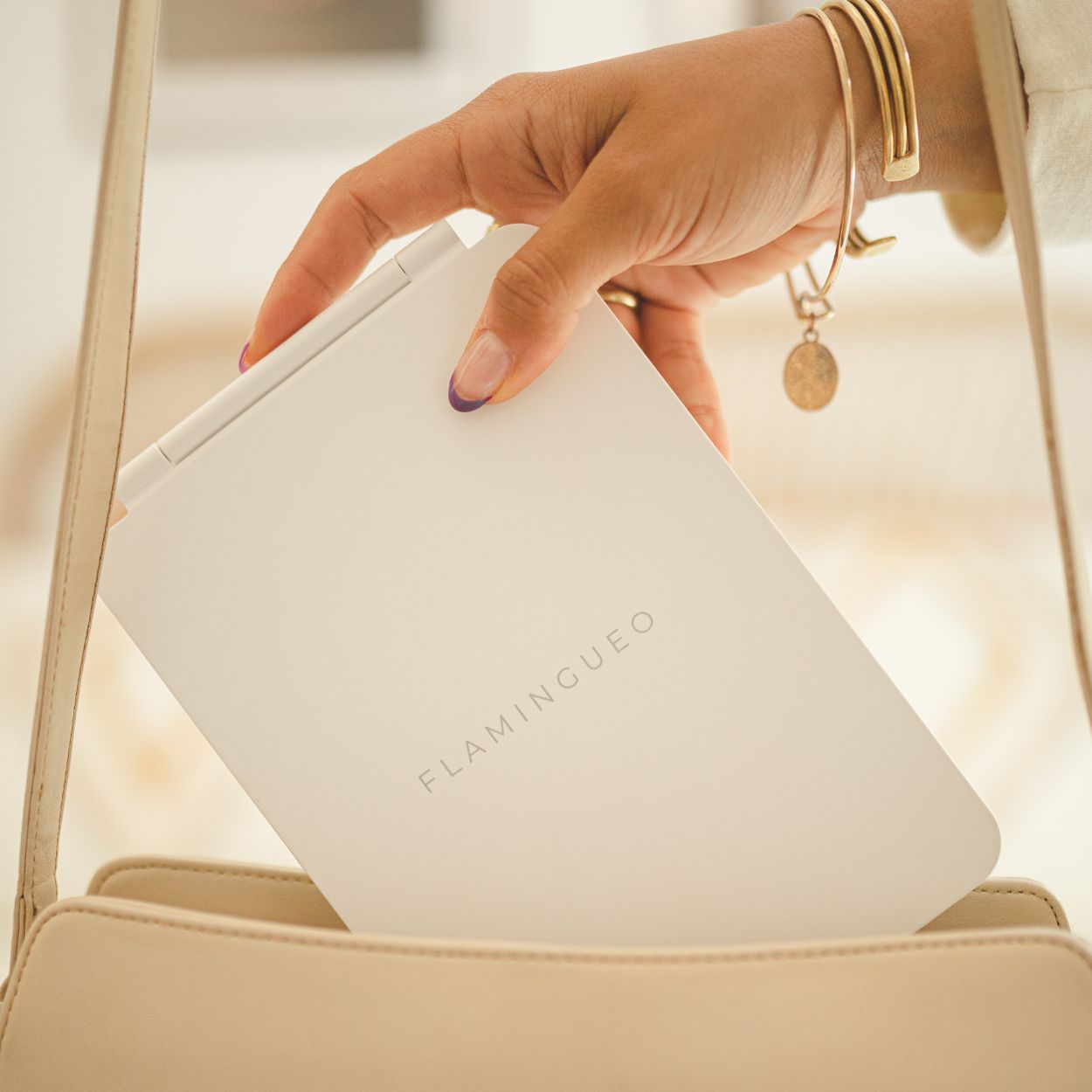 Flamingueo Meikkipeili LED-valolla on täydellinen ratkaisu niille, jotka haluavat virheettömän valaistuksen meikin levitykseen missä ja milloin tahansa. Kompakti ja kevyt design sopii täydellisesti mukaan laukkuun, ja kolmen eri valaistustilan ansiosta saavutat aina oikean sävyn ja kontrastin kasvoillesi.