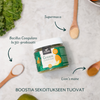 - Sisältää valmiin sekoituksen parhaita ja suosituimpia viherjauheita