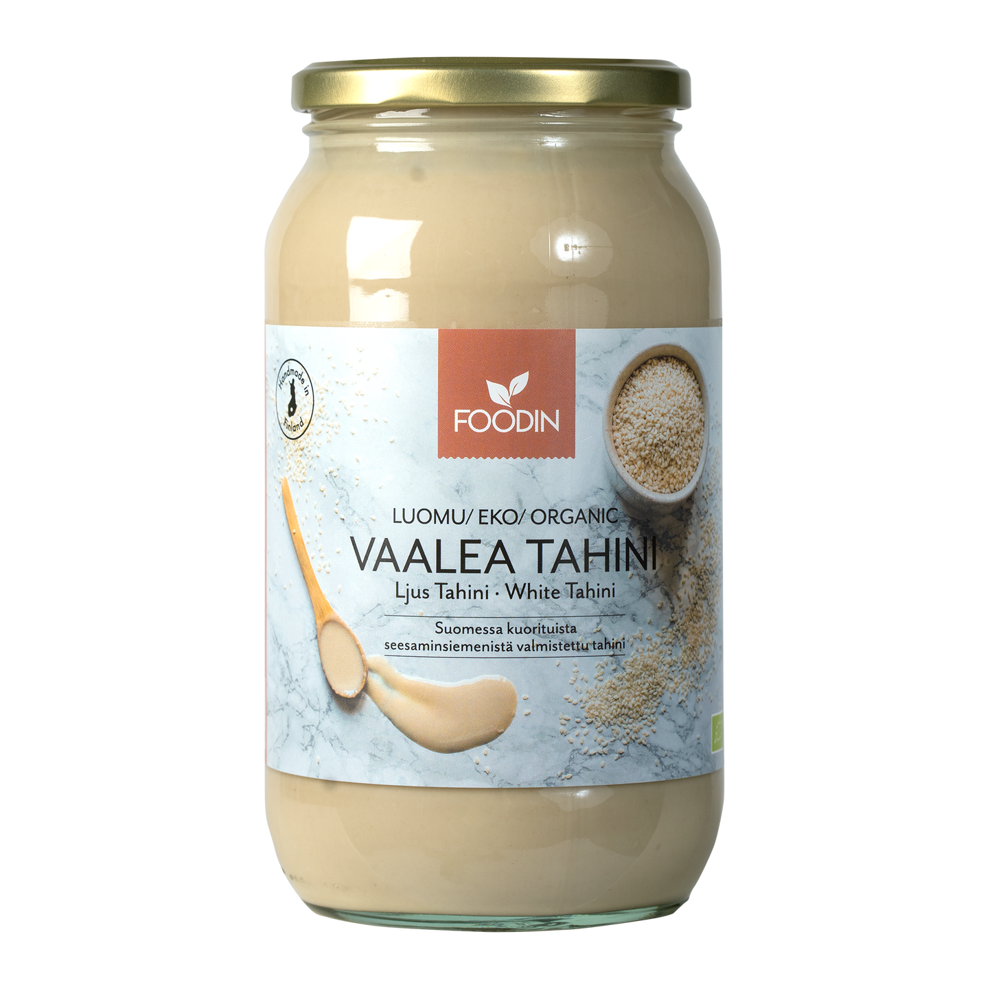 Foodin valmistaa tahinin hellävaraisesti kivimyllyssä jauhamalla. Paahtamattomat seesaminsiemenet säilyttävät näin ravinteensa ja muuttuvat kermaisen pehmeäksi tahnaksi. Sisältää paljon kalsiumia.