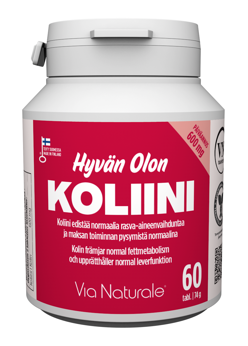 Avainlippu Gluteenittomat tuotteet Koliini Vegaaniset tuotteet Vitamiinit Vitamiinit & RavintolisÀtHyvÀn Olon Koliini