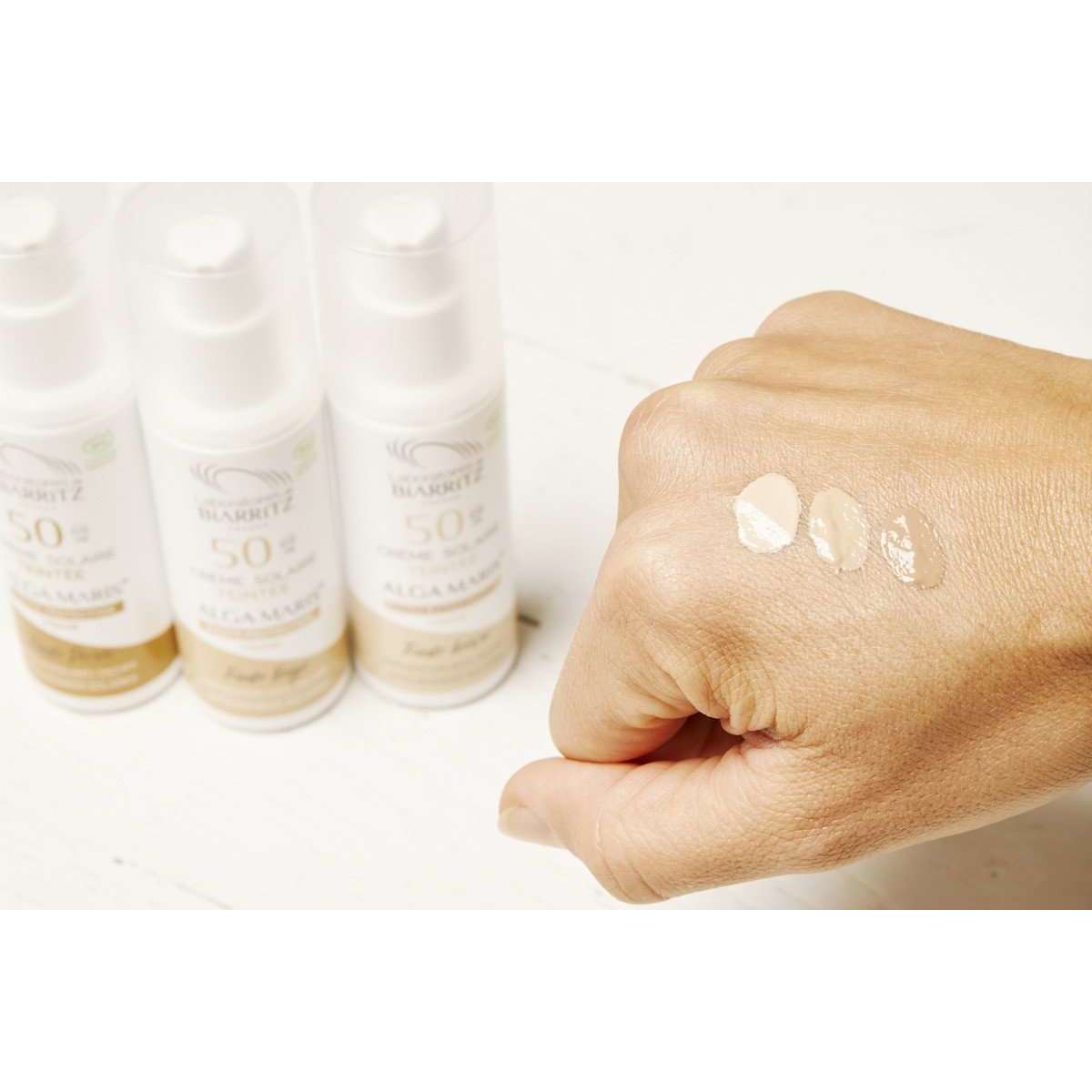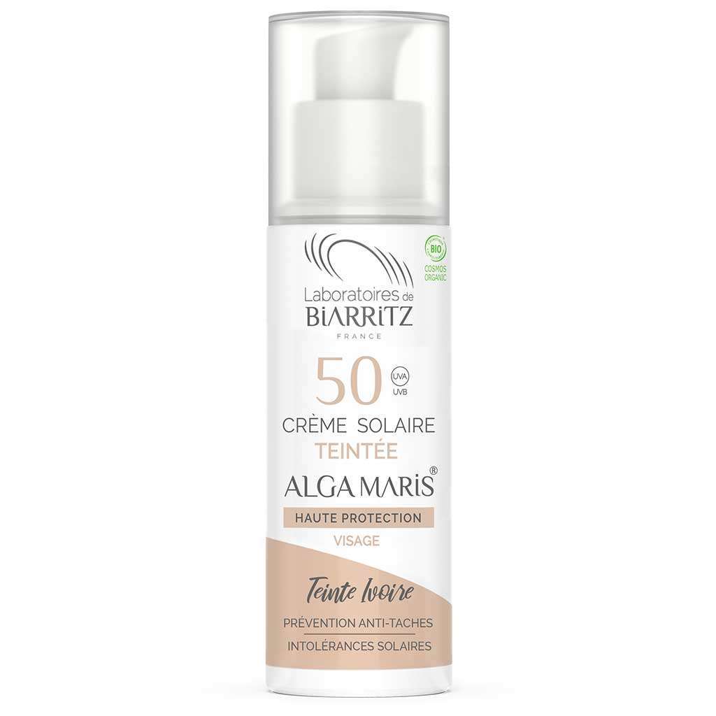Aurinko Aurinkovoiteet Cosmebio Ecocert Hajusteettomat tuotteet Kasvovoiteet Lomalle Luonnonkosmetiikka Vegaaniset tuotteet VeganLaboratoires de Biarritz Alga Maris Sävyttävä Aurinkovoide Kasvoille SK50 Ivory