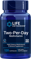 Life Extension Two-Per-Day Monivitamiini sisältää vitamiineista A-, C- ja D-vitamiinia, sekä kaikki B-ryhmän vitamiinit. Kivennäisistä, hivenaineista sekä muista vaikuttavista aineista tuotteessa on jodia, magnesiumia, sinkkiä, seleeniä, mangaania, kromia, molybdeenia, inositolia, alfalipoiinihappoa, kversetiinia, kehäkukkauutetta, apigeniinia, booria ja lykopeenia.
