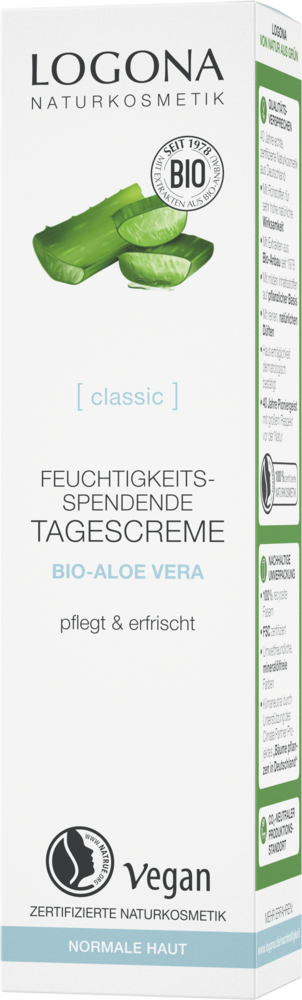 Logona Classic Kosteuttava Päivävoide tarjoaa ihollesi kevyttä kosteutusta ja raikkautta. Luomu aloe veraa sisältävä kasvovoide imeytyy nopeasti, pehmentää ihoa ja auttaa säilyttämään sen luonnollisen tasapainon – ilman raskasta tunnetta tai rasvaista pintaa.