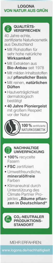 Tämä Logona päivävoide sopii normaalille iholle. Vegaaninen koostumus sisältää vain tarpeellisen – ei synteettisiä hajusteita, ei mikromuovia, ei turhia täyteaineita.