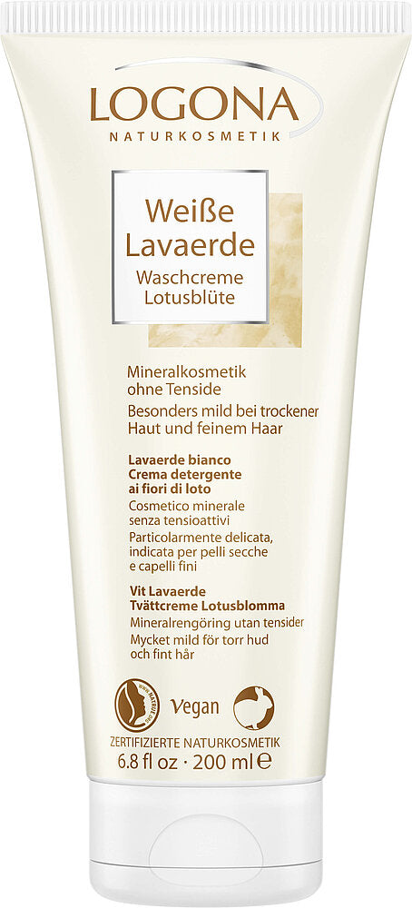 Logona Rhassoul Valkoinen Savipesuvoide Lootuksenkukka on suunniteltu erityisesti herkän ja kuivan ihon sekä hentojen hiusten lempeään puhdistukseen. Hellävarainen Rhassoul-pohjainen savipesuvoide ei sisällä tensidejä, vaan se puhdistaa luonnollisesti ja rauhoittavasti – ilman kuivattavaa vaikutusta.