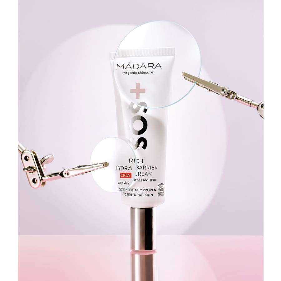 Mádaran CICA kasvovoide auttaa palauttamaan ihon epidermaalisen tasapainon. Bisabololia, sheavoita ja keramideja sisältävä SOS Rich -voide ehkäisee kosteuden haihtumista iholta. Näin voide ehkäisee kuivuudesta johtuvaa epämukavuutta, kuten kiristelyä.