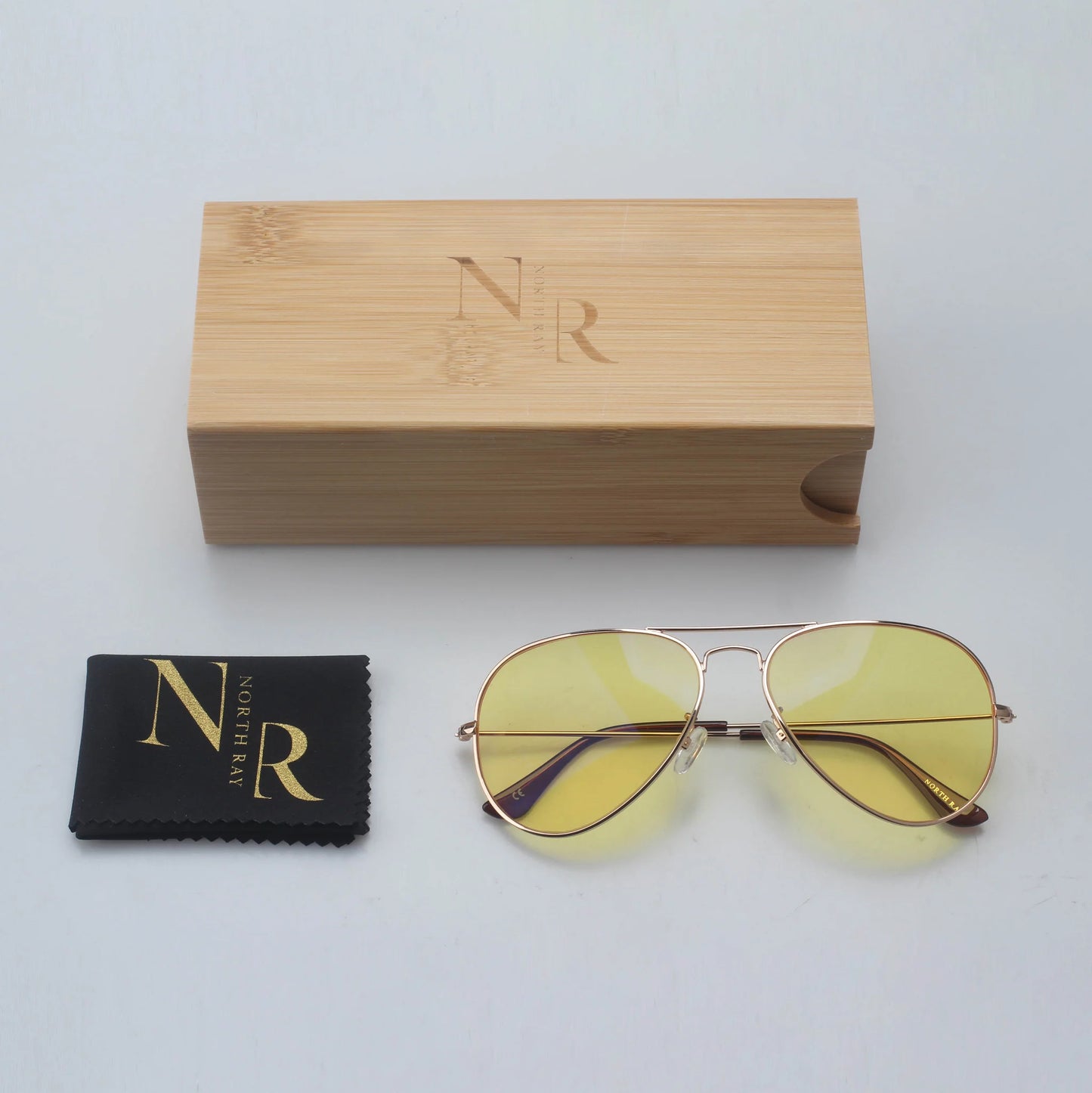 Linssit toimivat myös aurinkolaseina sisältäen 100% UV400-suojan. Sangat ovat upean kultaiset, kevyet metallisangat, ja säädettävät nenätyynyt takaavat täydellisen istuvuuden. Lasien säilytysrasia on ekologista bambumateriaalia, joka pitää lasisi turvassa ja ympäristön ystävällisenä.