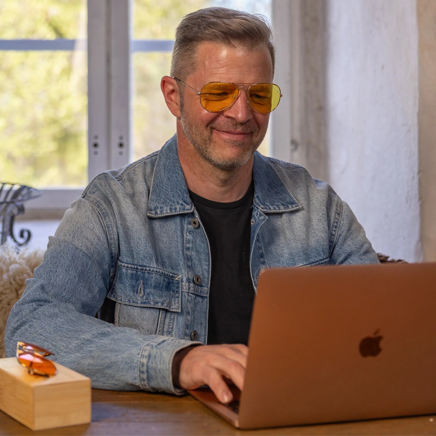 Jos haluat lähteä liikkeelle ainoastaan yksillä laseilla ja tarvitset sinivalosuojaa sekä päivällä että illalla, suosittelemme valitsemaan päivälasit keltaisella linssillä. Voit käyttää laseja aamusta iltaan ja vuorotyöläisenä myös yövuoroissa. Vaikka keltaisen linssin sinivaloa suojaava vaikutus ei ole iltakäyttöön yhtä tehokas kuin oranssin linssin, päivälasien laadukas sinivalosuoja on jo merkittävä apuri kohti parempia unia.