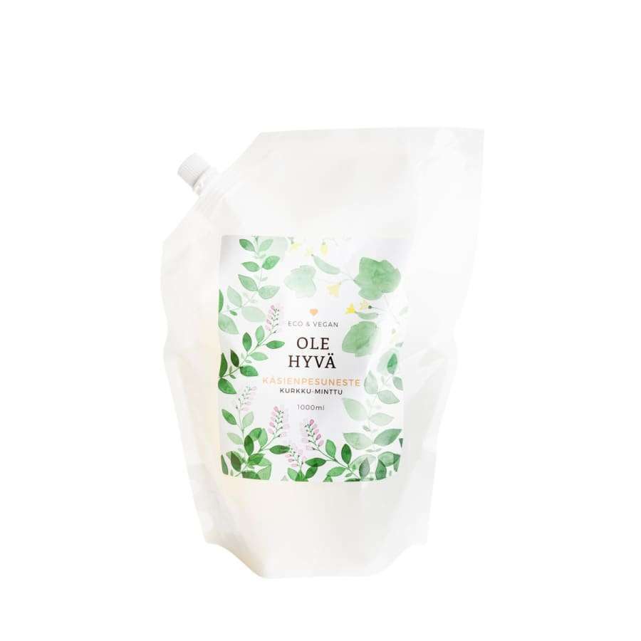Ole Hyvä Käsipesu Kurkku-Minttu virkistää tuoksullaan! Siinä tuoksuu raikas eukalyptys. Kurkku sisältää reilusti antioksidantteja, joista on hyötyä myös iholle. Käsisaippua virkistää, kosteuttaa ja ravitsee ihoa säilyttäen sen luonnollisen kimmoisuuden. Iholle hellävarainen pesuneste soveltuu toistuvaan käsienpesuun ja se on vegaaninen.