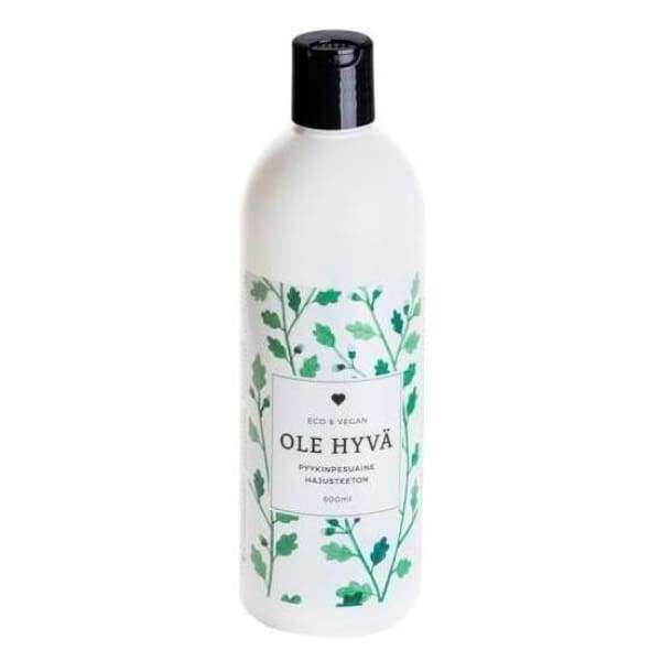 Ole Hyvä Pyykinpesuaine Hajusteeton on kotimainen vaihtoehto pyykin pesuun! Hajustamaton ja ekologinen Ole Hyvä pyykinpesuaine puhdistaa arjessa likaantuneen pyykin. Se sopii niin käsi- että konepyykille. Tuote ei sisällä valkaisuainetta ja soveltuu siksi parhaiten kirjopyykille, mutta puhdistaa myös normaalilikaisen valkopyykin.