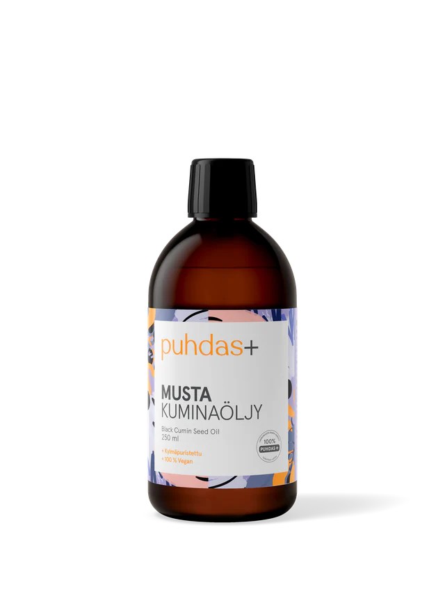 Gluteenittomat tuotteet Myydyin Omega-6 Omega-9 Rasvahapot Vegaaniset tuotteet Vitamiinit & Ravintolisät Öljyt Öljyt ja rasvatPuhdas+ Mustakuminaöljy
