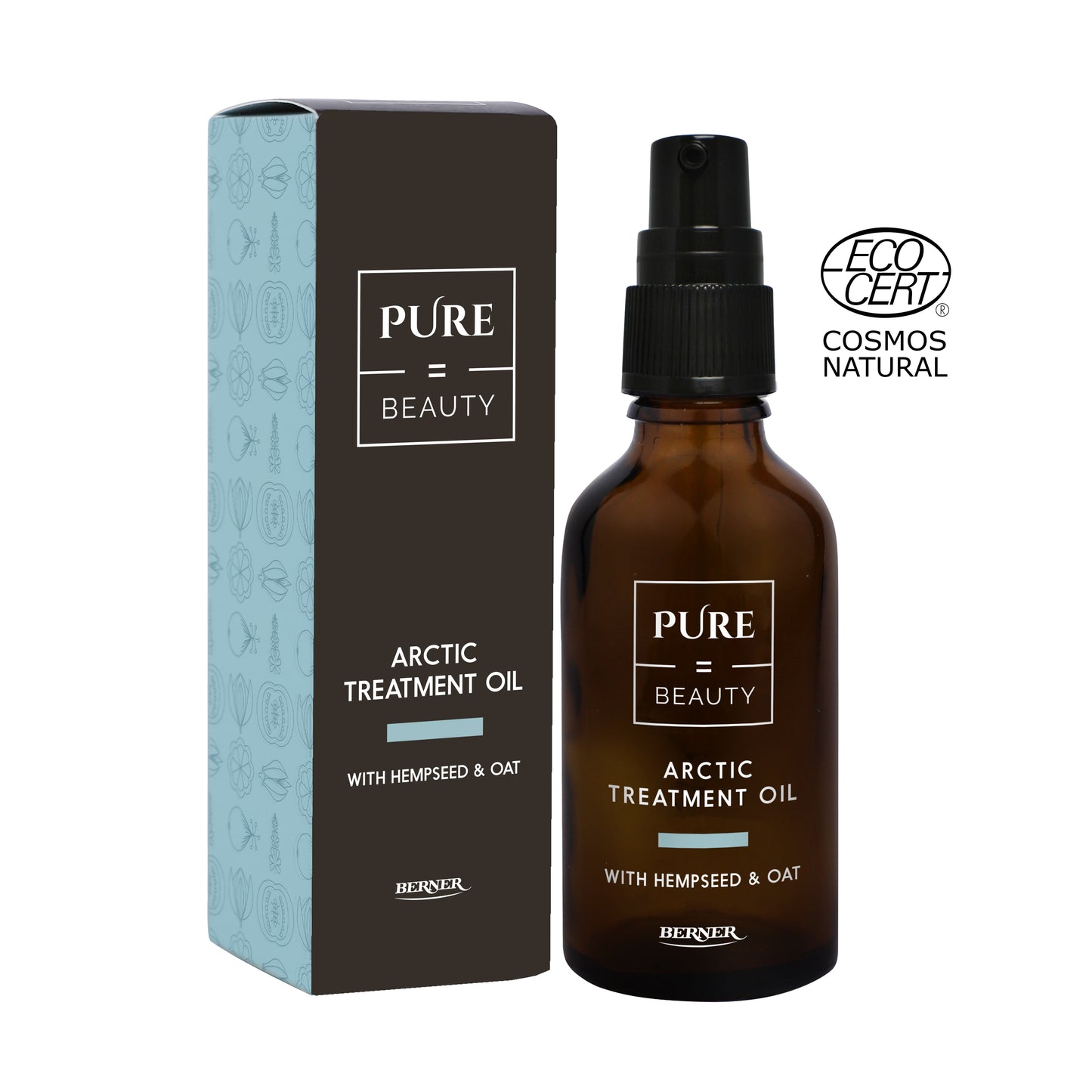 Pure=Beauty Arctic Treatment Oil on sarjansa ensimmäinen täysin suomalainen ihonhoitoöljy, joka on suunniteltu erityisesti Pohjolan vaativiin olosuhteisiin. Tämä ainutlaatuinen öljy sisältää suomalaista hampunsiemenöljyä, kaura- ja pellavaöljyä, jotka ovat tunnettuja niiden korkeista Omega-6- ja -3-rasvahappopitoisuuksista sekä E-vitamiinista. Se on kehitetty syväkosteuttamaan, pehmentämään ja ravitsemaan ihoa, tarjoten samalla tehokasta suojaa kuiville, rohtuneille ja ärtyneille ihoalueille.