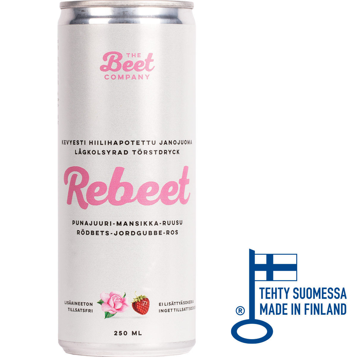Vesi, suomalainen punajuuritäysmehu 12 %, suomalainen mansikkatäysmehu 6,1 %, sitruunatäysmehu tiivisteestä, hiilidioksidi, suomalainen ruusunterälehti.