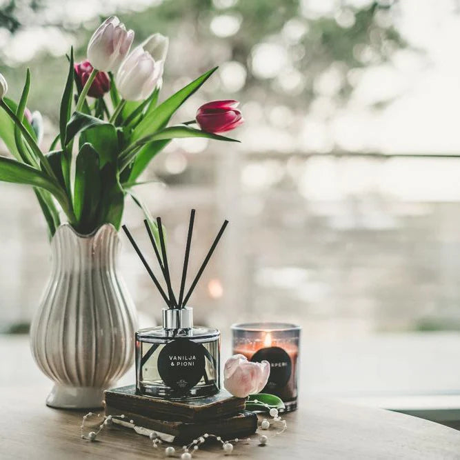 Saaren Taika Huonetuoksu Vanilja & Pioni tuo kotiisi ylellisen ja hienostuneen tuoksuelämyksen