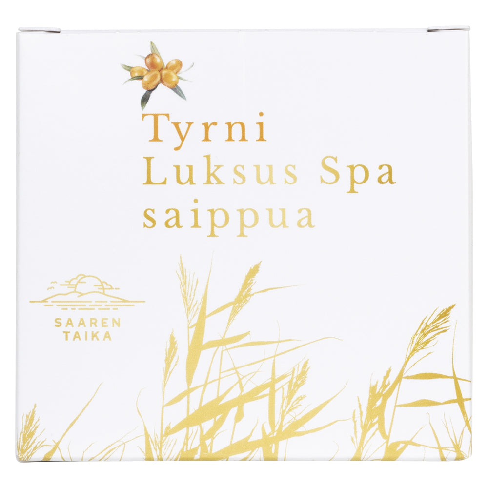 Luksussaippuan sisältämä tyrninlehtiuute on uutettu Särkisalon saarissa kasvavien tyrnipensaiden kuivatetuista lehdistä. Tyrnipensaat kasvavat Saaren Taikan puutarhassa täysin luonnonmukaisesti ilman lannotteita ja tuholaismyrkkyjä. Tyrni Luksus Spa saippuaan on käytetty kuivattua tyrninlehtijauhetta ja tyrninlehtiuutetta.