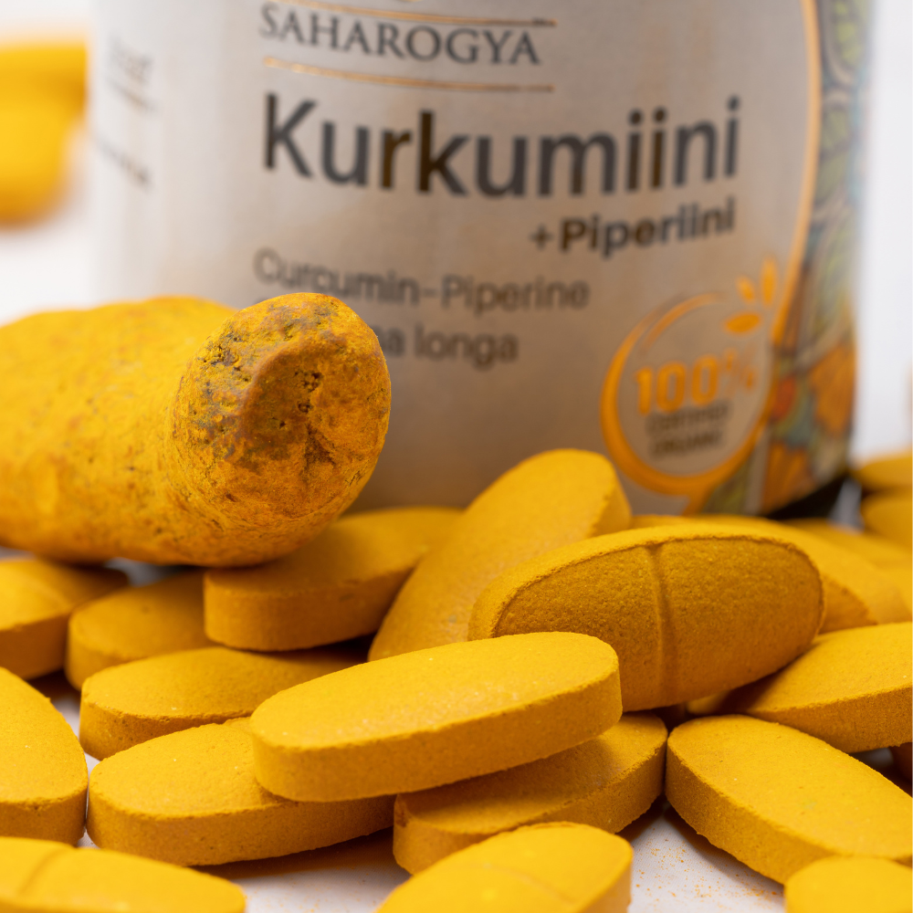 - Sisältää 740 mg kurkumiinia + 10 mg piperiiniä / tabletti