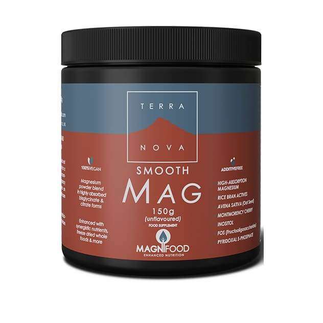 Terranova Smooth Mag Magnesiumjauhe on erinomaisesti imeytyvä kasvijauhe-magnesium-vitamiinivalmiste. Sopii kasvissyöjille ja vegaaneille. Ravintolisä.