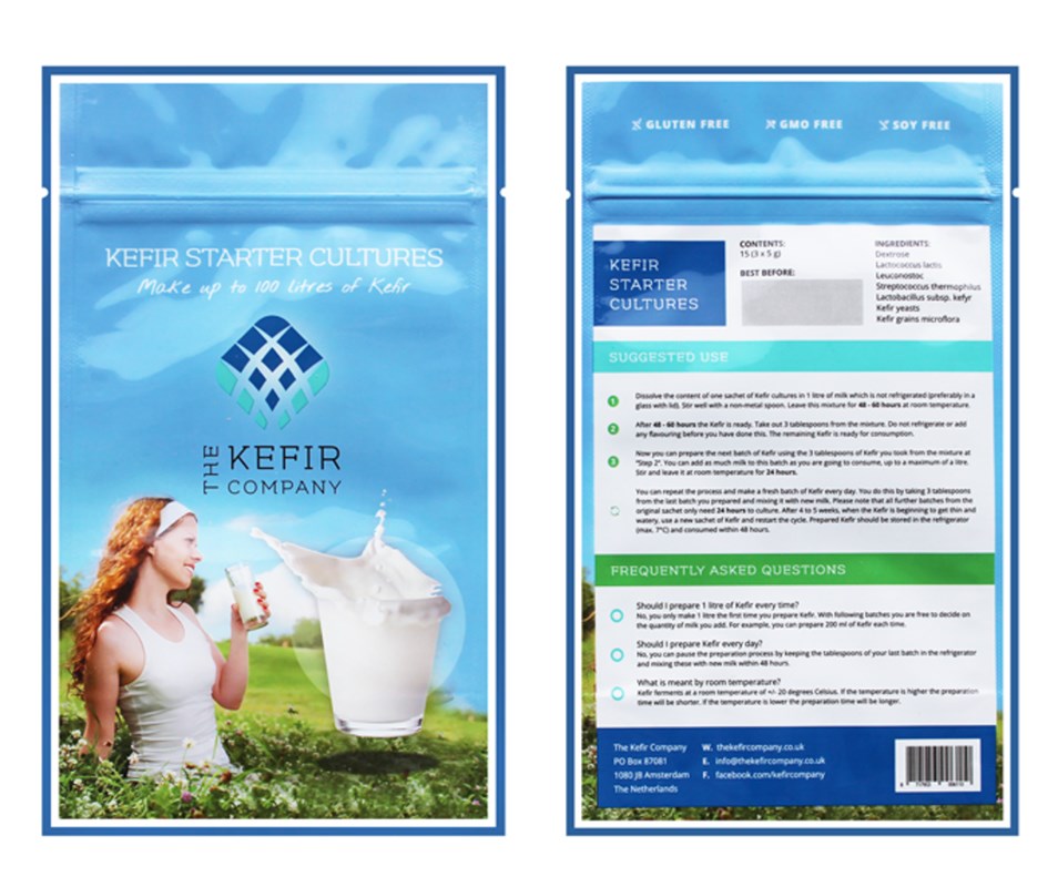 The Kefir Company tarjoaa ainutlaatuisen mahdollisuuden valmistaa itse aitoa kefiiriä kotona. Yksi pakkaus sisältää kolme annospussia, joilla voit valmistaa jopa 100 litraa terveysjuomaa.