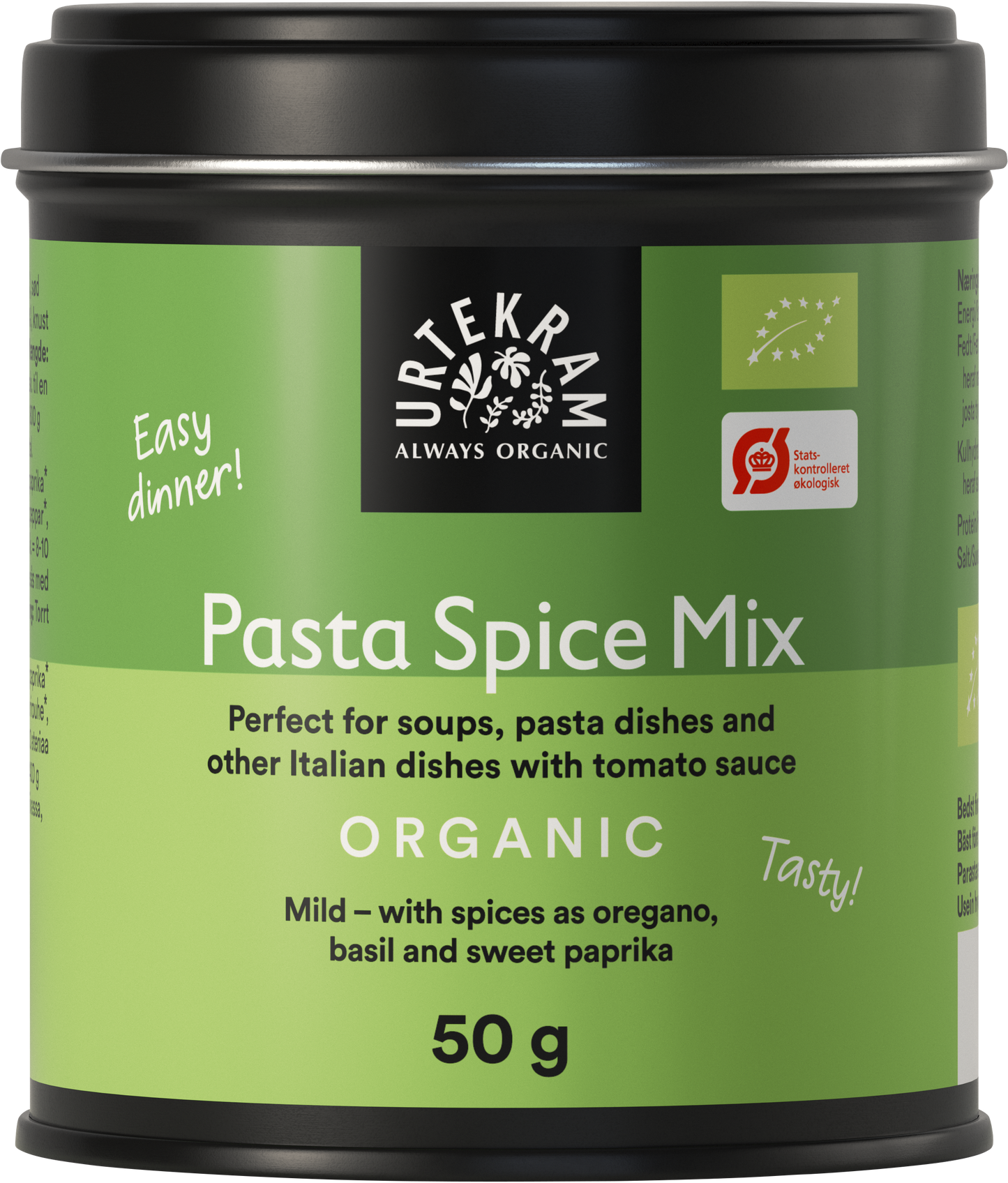 Urtekram Luomu Pasta Mausteseos on erittäin monipuolinen ja helppokäyttöinen. Se tuo pastaruokiin aidon italialaisen maun hetkessä. Lisää tätä mausteseosta pastakastikkeisiin, pestoihin, pastasalaatteihin tai käytä pöytämausteena tuomaan lisämakua.